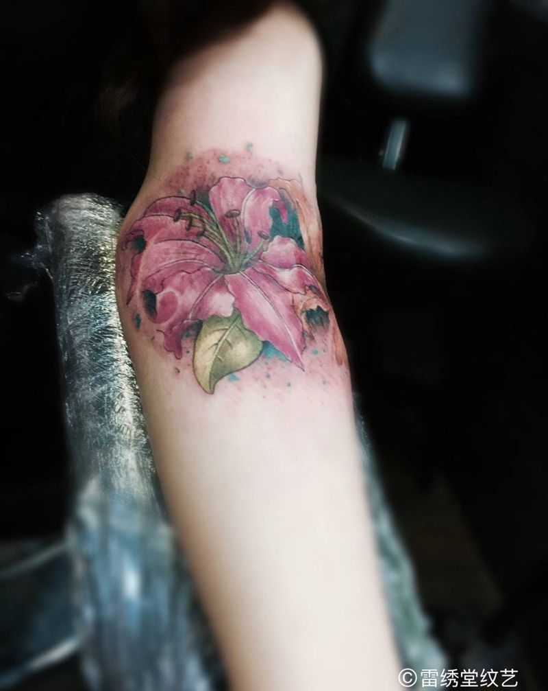 当前位置: 首页 >安徽省阜阳市纹身店-临泉雷绣堂艺术纹身工作室纹身图案>百合花遮盖烫伤疤痕纹身图片