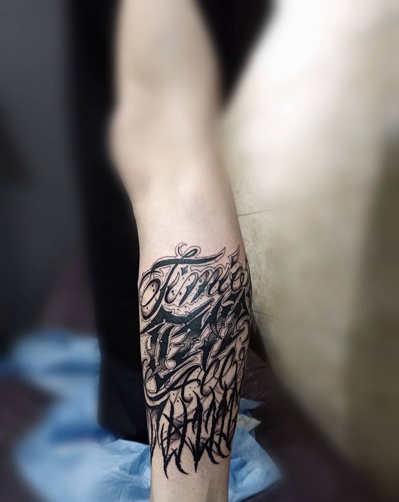 当前位置: 首页 >安徽省阜阳市纹身店-龍門刺青工作室纹身图案>小腿花体字纹身图片_腿部花体字纹身图案