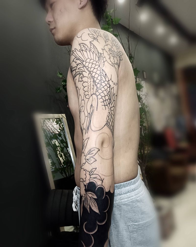 当前位置: 首页 >安徽省阜阳市纹身店-龍門刺青工作室纹身图案>日式仙鹤花臂纹身图片_手臂老传统仙鹤花臂日式老传统纹身图案