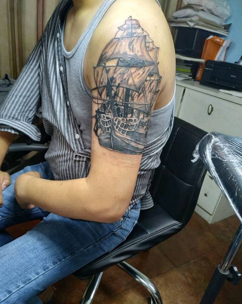 当前位置: 首页 >安徽省阜阳市纹身店-龍門刺青工作室纹身图案>帆船遮盖纹身图片_手臂新传统帆船 遮盖纹身图案