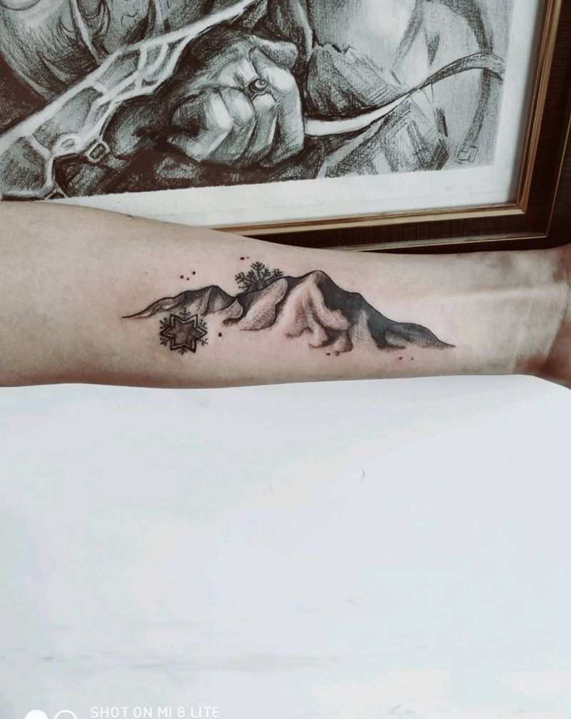 今日份小山纹身图片_手臂点刺山 点刺纹身图案