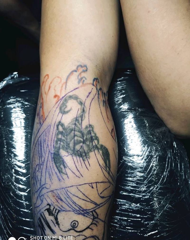 当前位置: 首页 >安徽省阜阳市纹身店-龍門刺青工作室纹身图案>般若遮盖蝎子未完成纹身图片_手臂新传统般若遮盖蝎子纹身图案