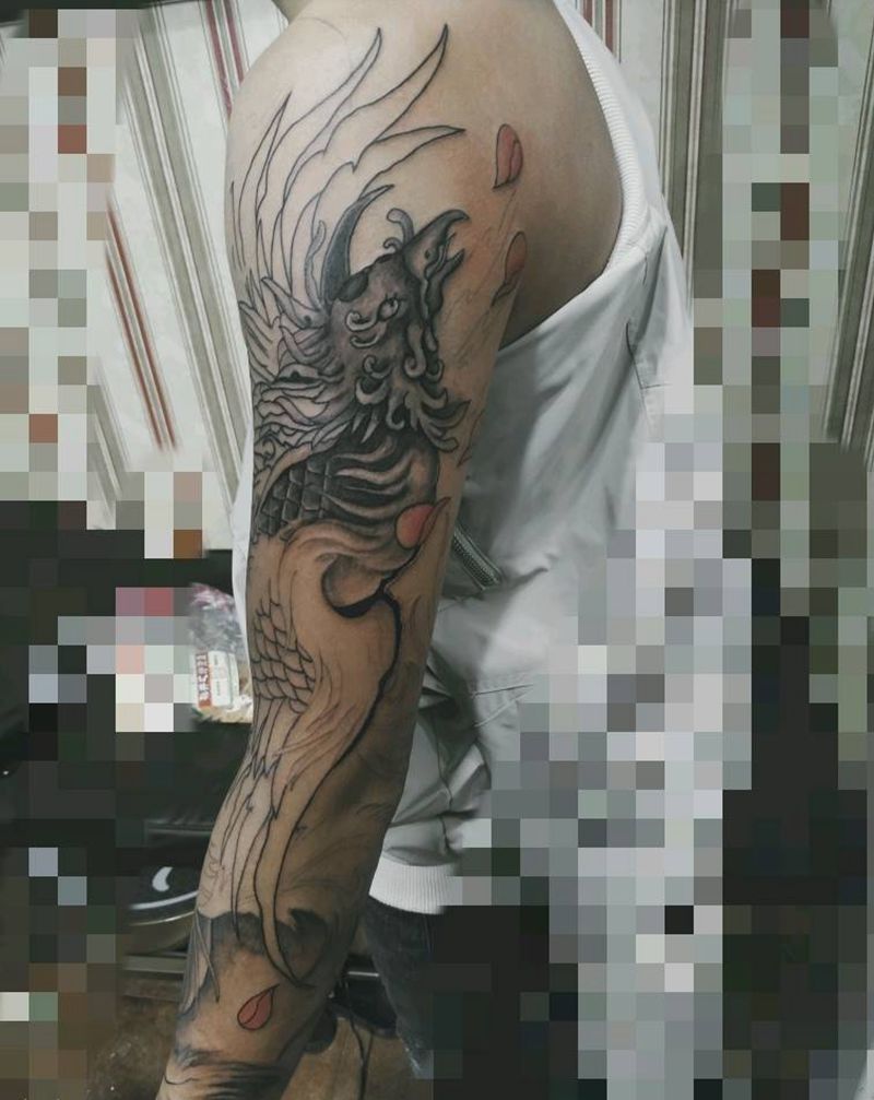 凤凰花臂未完成纹身图片_手臂新传统凤凰花臂纹身图案