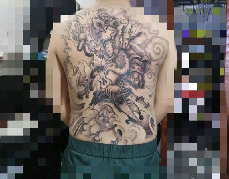 黑灰满背纹身图案