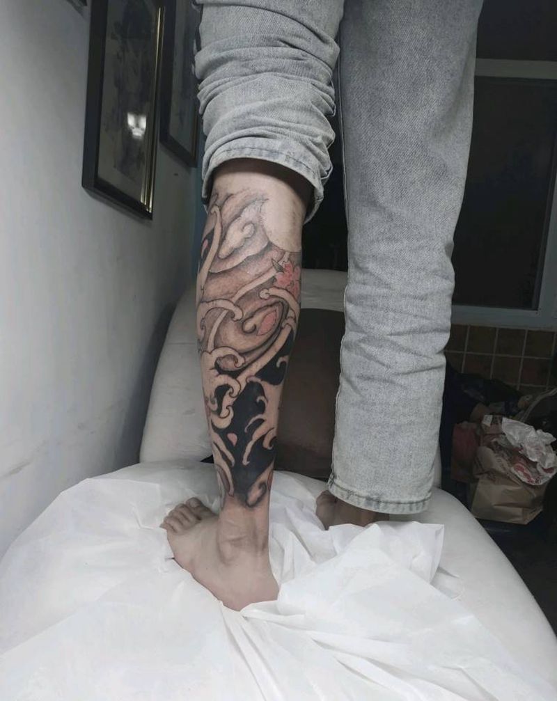 当前位置: 首页 >安徽省阜阳市纹身店-龍門刺青工作室纹身图案>浪花包小腿纹身图片_腿部新传统浪腿纹身图案
