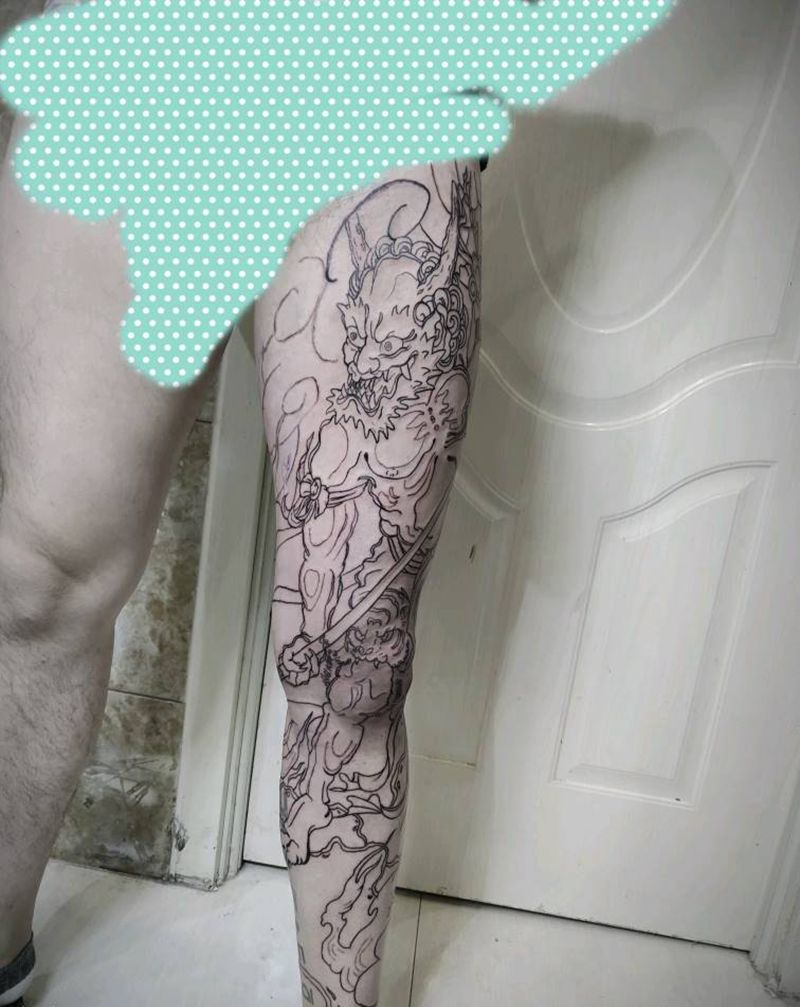 当前位置: 首页 >安徽省阜阳市纹身店-龍門刺青工作室纹身图案>花腿遮盖第一遍线纹身图片_腿部老传统纹身图案