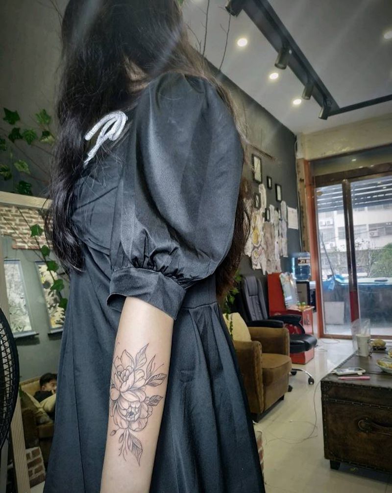 小臂素花纹身图片_手臂点刺素花纹身图案