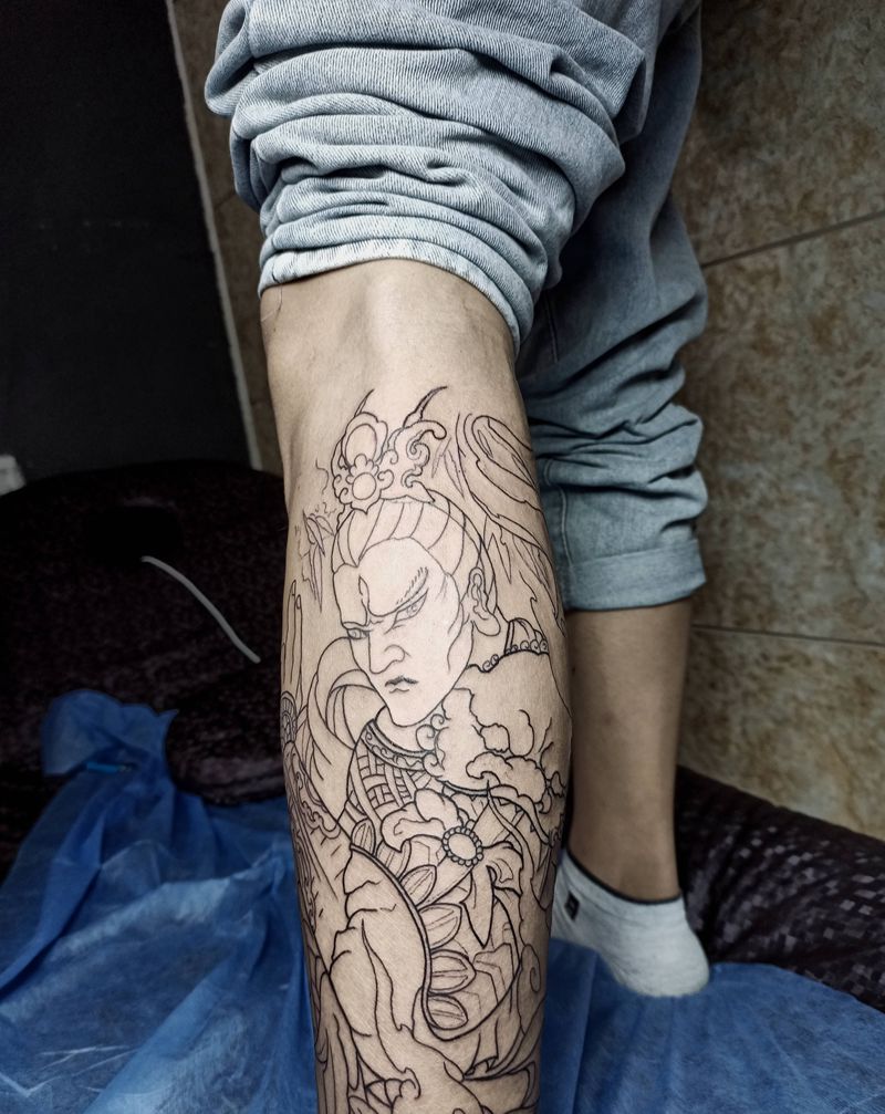 当前位置: 首页 >安徽省阜阳市纹身店-龍門刺青工作室纹身图案>二郎神线条纹身图片_腿部新传统二郎神纹身图案