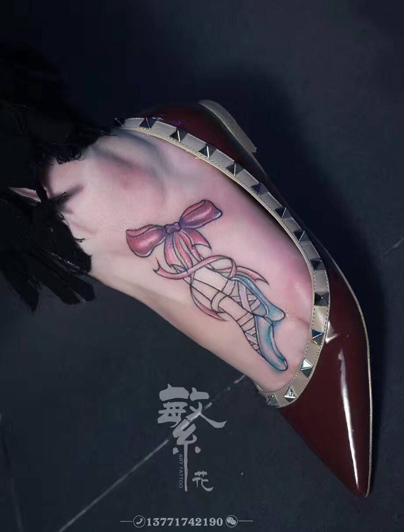当前位置: 首页 >江苏省苏州市纹身店-苏州繁花艺术刺青纹身图案>芭蕾舞鞋 舞鞋纹身图片_手稿成品脚部腿部欧美清新写实静物纹身图案