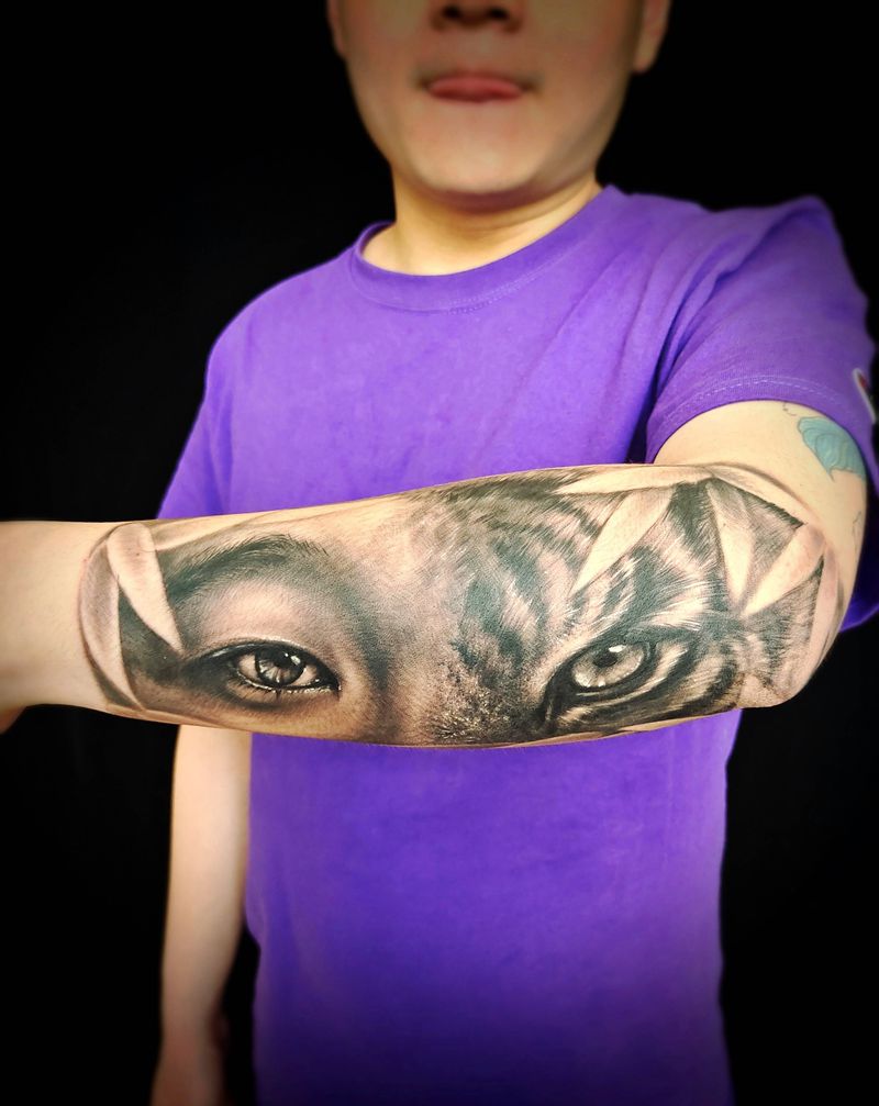 当前位置: 首页 >江苏省徐州市纹身店-徐州胜杰纹身纹身图案>写实老虎肖像纹身图片_手臂欧美写实纹身图案