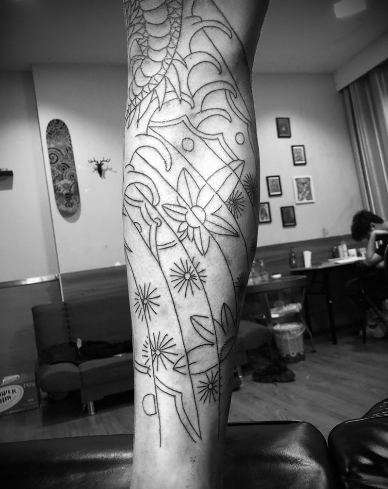 • T网红王老大花腿龙纹身图片_腿部新传统纹身图案