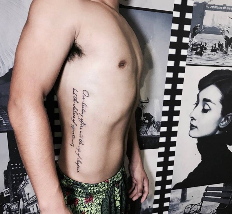 • T关于私处得爱!纹身图片_成品腹部清新字符图腾纹身图案