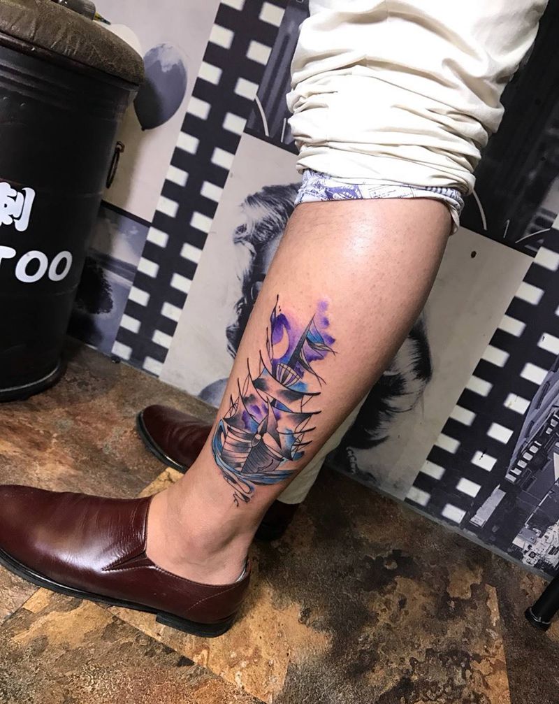 • T网红王老大花腿龙纹身图片_腿部新传统纹身图案