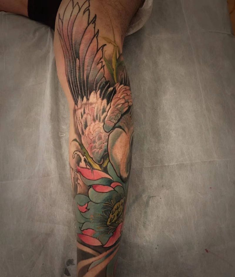 • T网红王老大花腿龙纹身图片_腿部新传统纹身图案