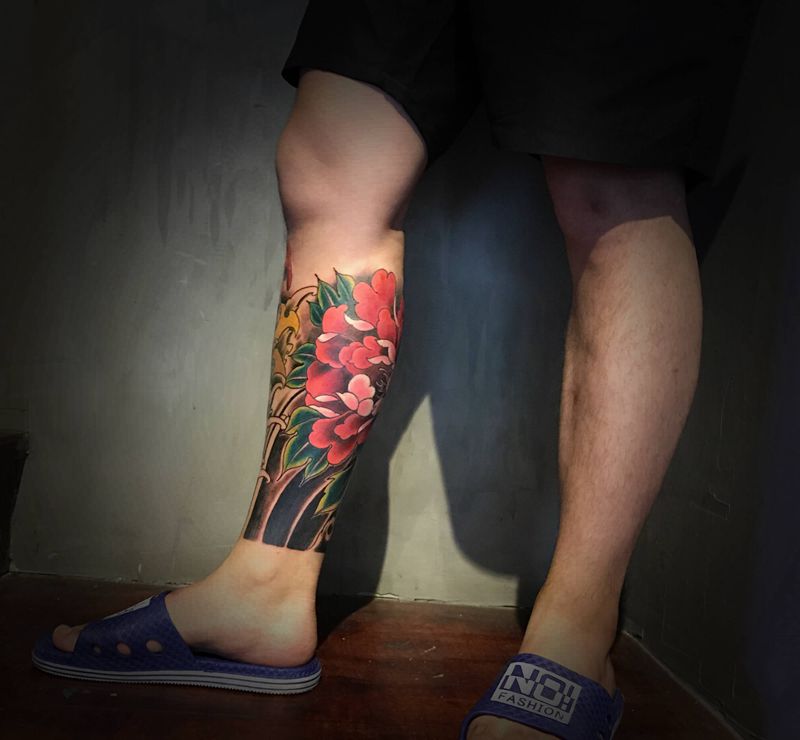 • T网红王老大花腿龙纹身图片_腿部新传统纹身图案