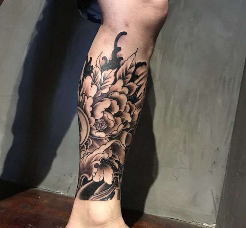 • T网红王老大花腿龙纹身图片_腿部新传统纹身图案