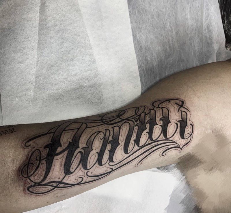 当前位置: 首页 >安徽省六安市纹身店-君刺刺青纹身图案>花体字纹身图片_手臂纹身图案