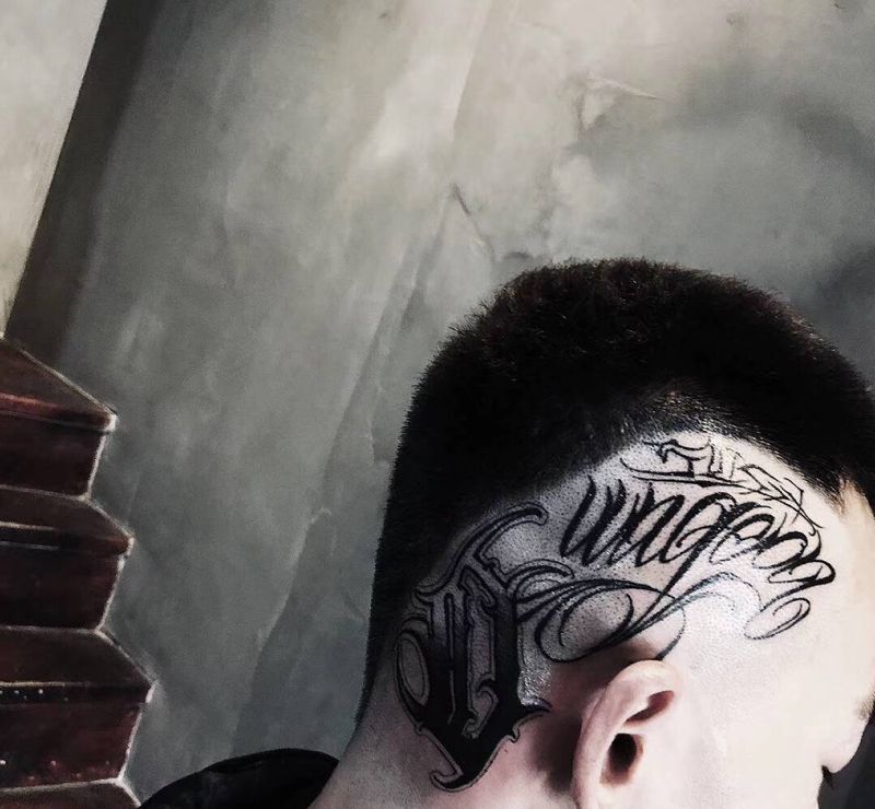 当前位置: 首页 >安徽省六安市纹身店-浮山刺青实验室纹身图案>花体纹身图片_颈部花体字纹身图案