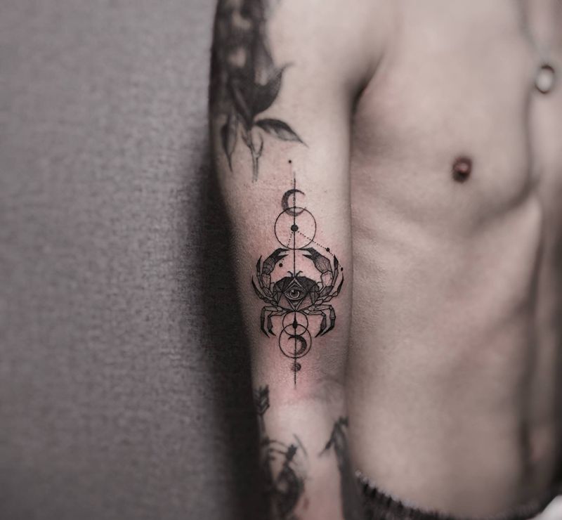 巨蟹座纹身图片_手臂肩部几何点刺纹身图案