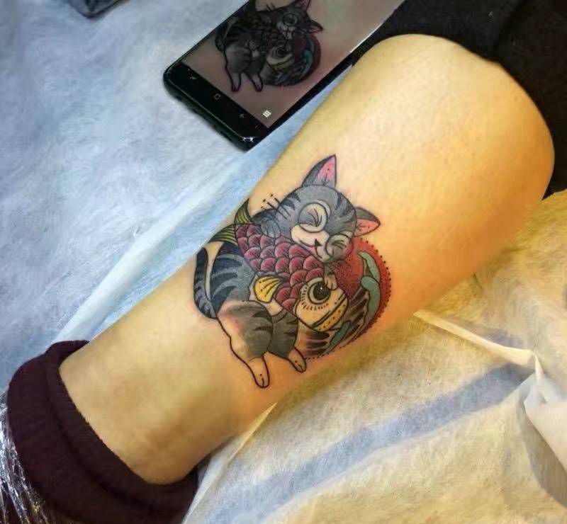 • T招财猫纹身图片