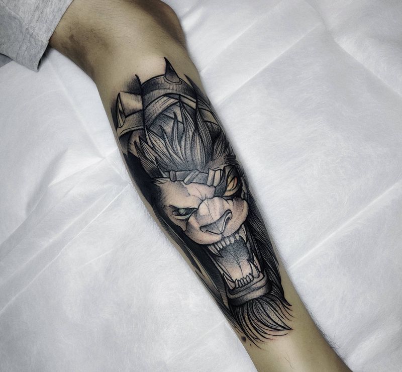 当前位置: 首页 >安徽省六安市纹身店-本格刺青工作室纹身图案>英雄联盟狮子狗纹身纹身图片_手臂点刺几何纹身图案