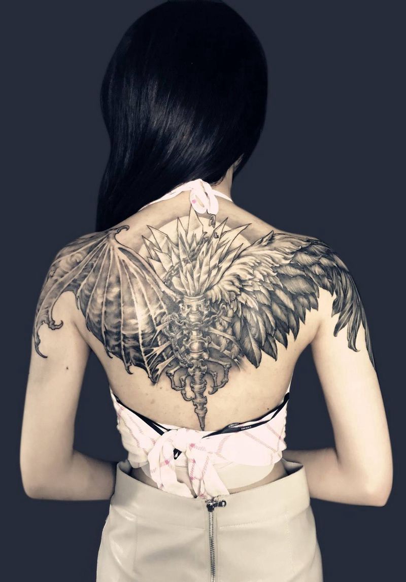 黑灰满背纹身图案