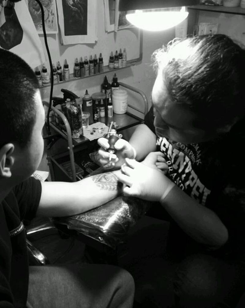 • T包小腿吹火男+阿多福纹身图片_腿部老传统新传统吹火男阿