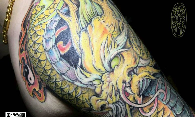 当前位置: 首页 >福建省福州市纹身店-福州战神纹身纹身图案>彩色手臂苍龙纹身图片