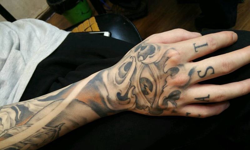 • 手背潮流时尚的玫瑰花眼睛纹身图案