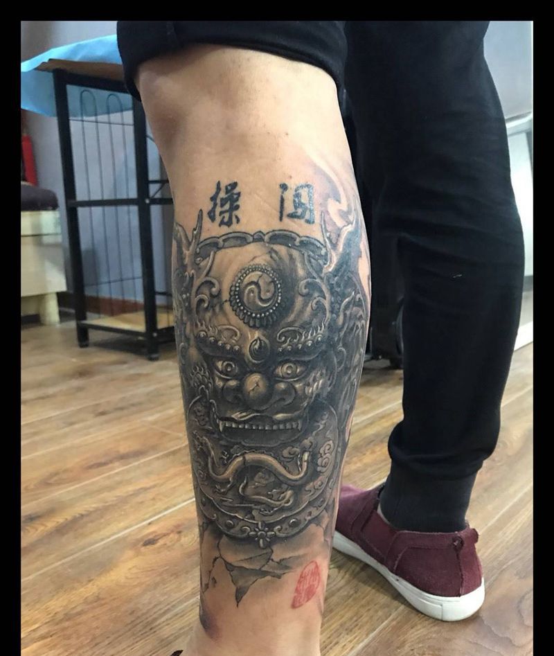 • T网红王老大花腿龙纹身图片_腿部新传统纹身图案