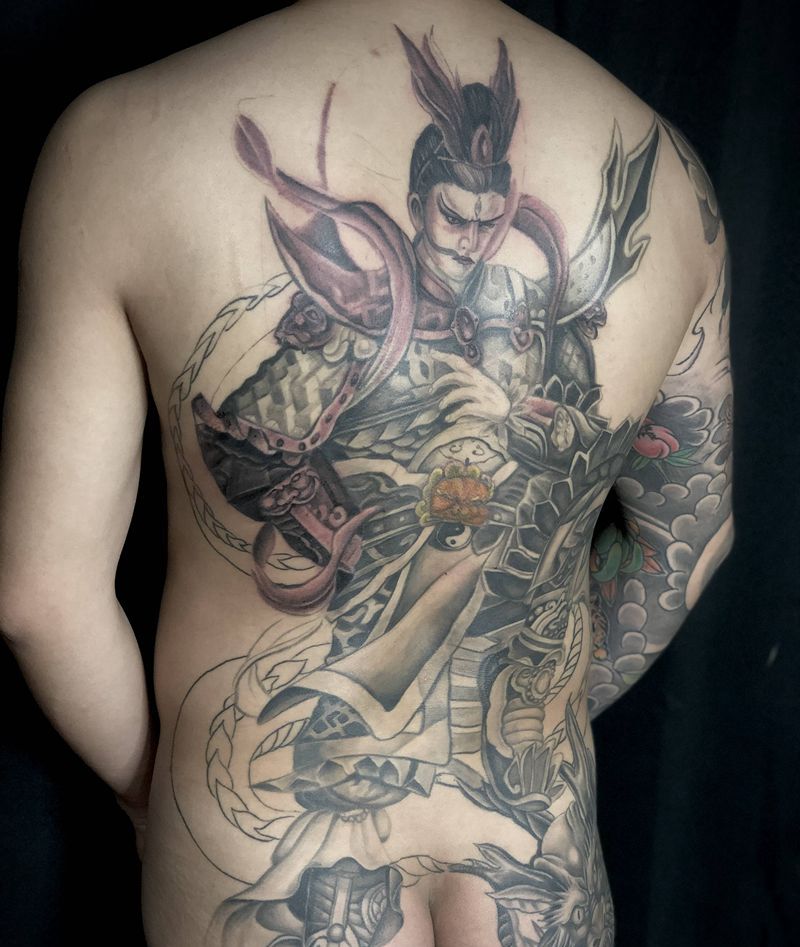 二郎神 未完成纹身图片_背部臀部新传统欧美写实纹身图案