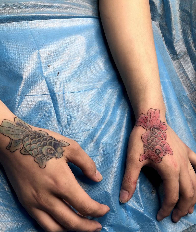 当前位置: 首页 >安徽省宿州市纹身店-The 7s Tattoo纹身图案>金鱼 遮盖纹身图片_手部老传统新传统金鱼纹身图案
