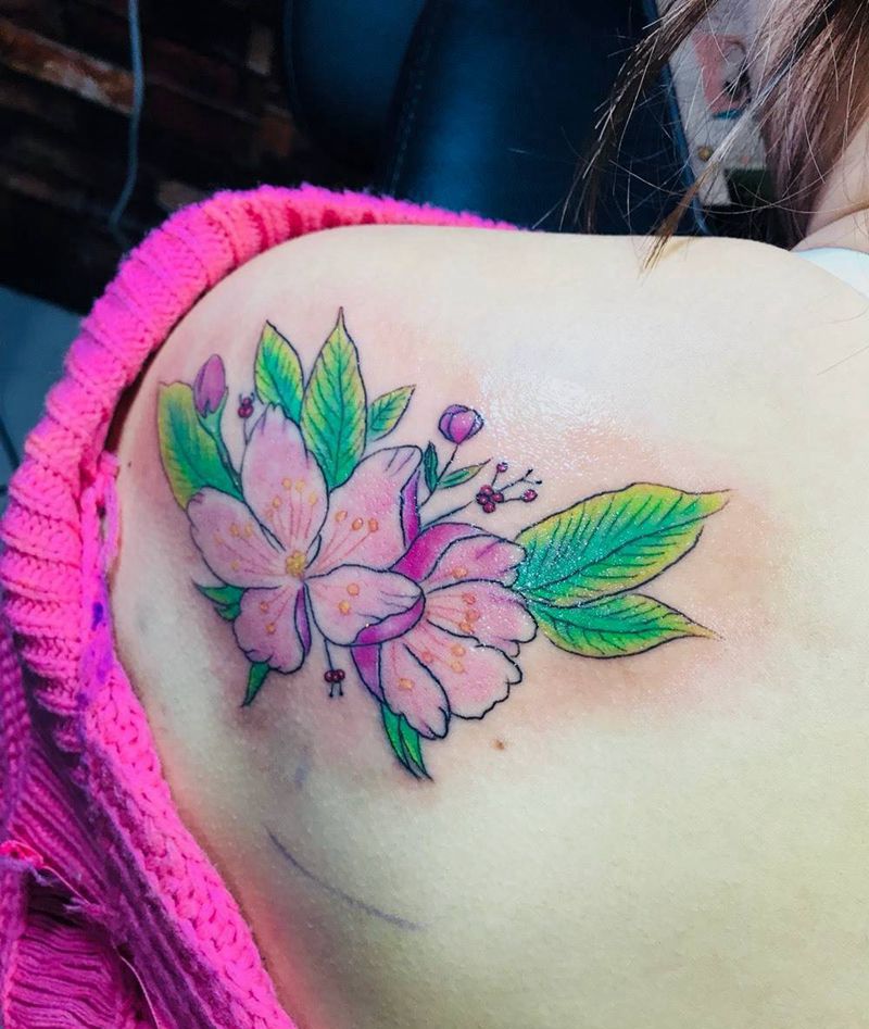 当前位置: 首页 >安徽省宿州市纹身店-The 7s Tattoo纹身图案>花纹身图片_背部成品清新传统植物纹身图案