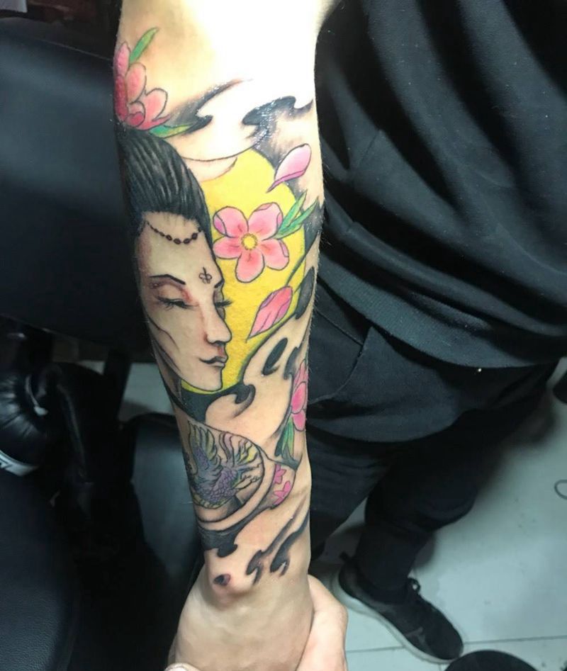 当前位置: 首页 >安徽省宿州市纹身店-The 7s Tattoo纹身图案>艺妓纹身图片_传统手臂成品人物植物纹身图案