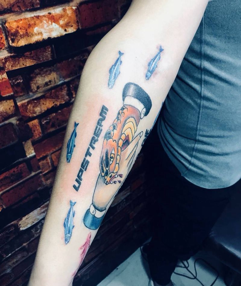 当前位置: 首页 >安徽省宿州市纹身店-The 7s Tattoo纹身图案>逆流而上纹身图片_成品手臂欧美清新动物纹身图案