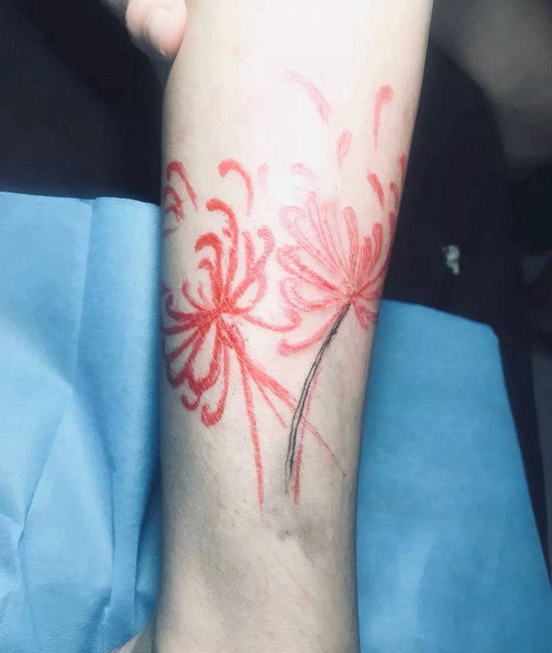 彼岸花纹身图片_脚部腿部水彩彼岸花纹身图案