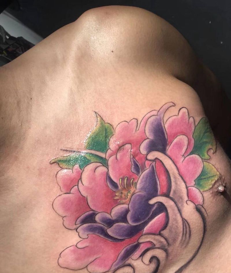 • 女性大花胸纹身_43张霸气漂亮的女性大花胸纹身图案作品