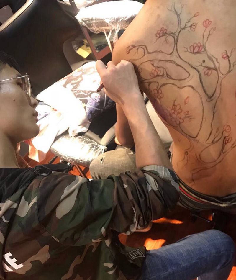 当前位置: 首页 >安徽省宿州市纹身店-The 7s Tattoo纹身图案>原创手绘梅花纹身图片_肩部背部新传统梅花纹身图案