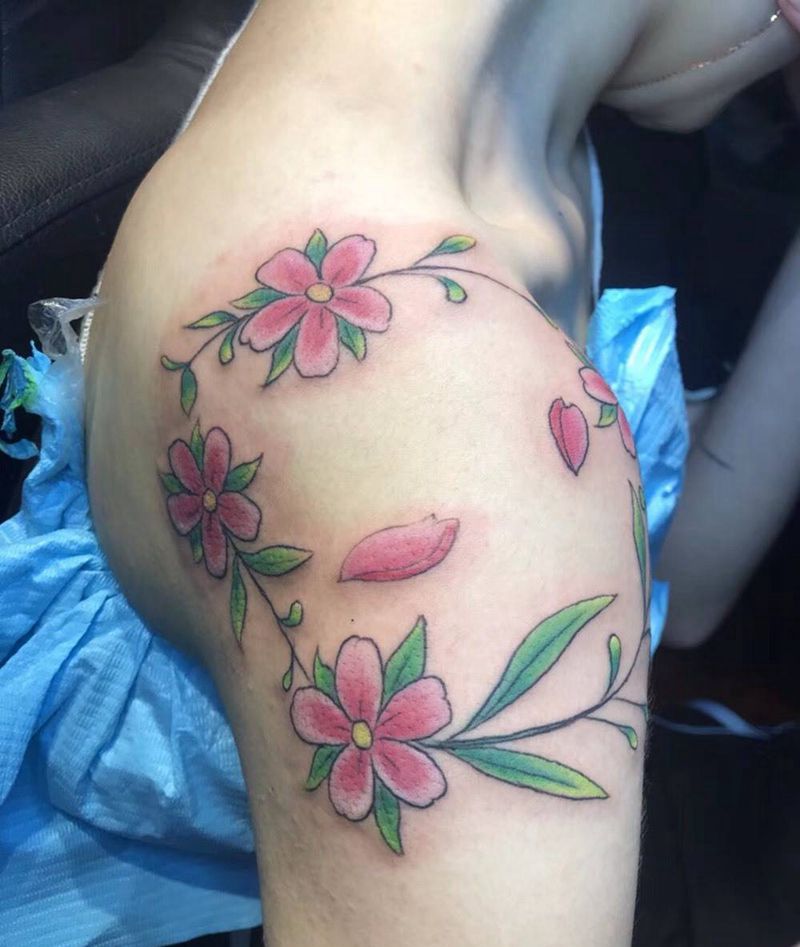 当前位置: 首页 >安徽省宿州市纹身店-The 7s Tattoo纹身图案>樱花纹身图片_肩部手臂小清新纹身图案