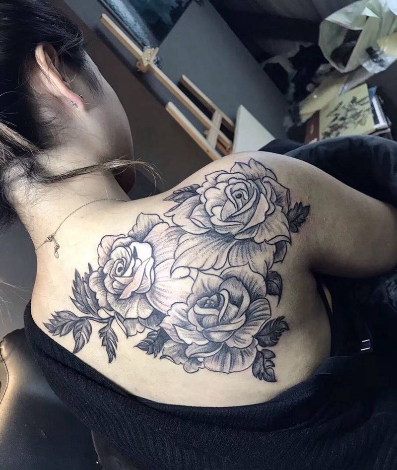素花纹身图片_肩部背部点刺纹身图案