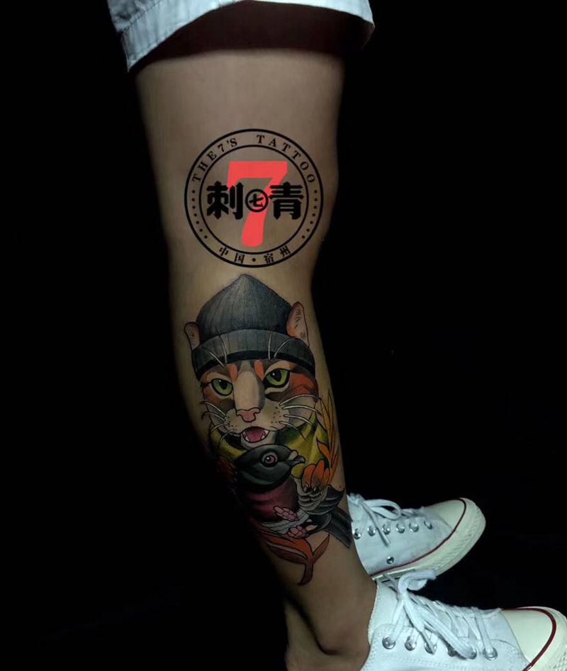 当前位置: 首页 >安徽省宿州市纹身店-The 7s Tattoo纹身图案>New School纹身图片_腿部手臂New School欧美写实猫鸟纹身图案