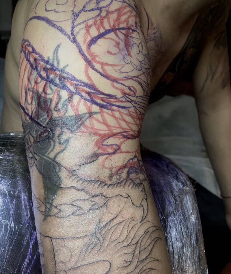 当前位置: 首页 >安徽省宿州市纹身店-The 7s Tattoo纹身图案>半胛龙 遮盖老纹身纹身图片_胸部手臂老传统新传统纹身图案