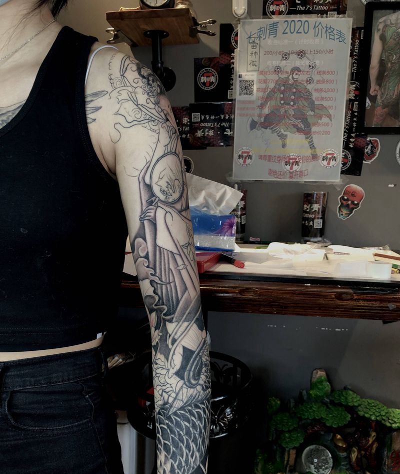 当前位置: 首页 >安徽省宿州市纹身店-The 7s Tattoo纹身图案>暴力遮盖 艺伎鲤鱼 未完纹身图片_手臂手部老传统新传统纹身图案