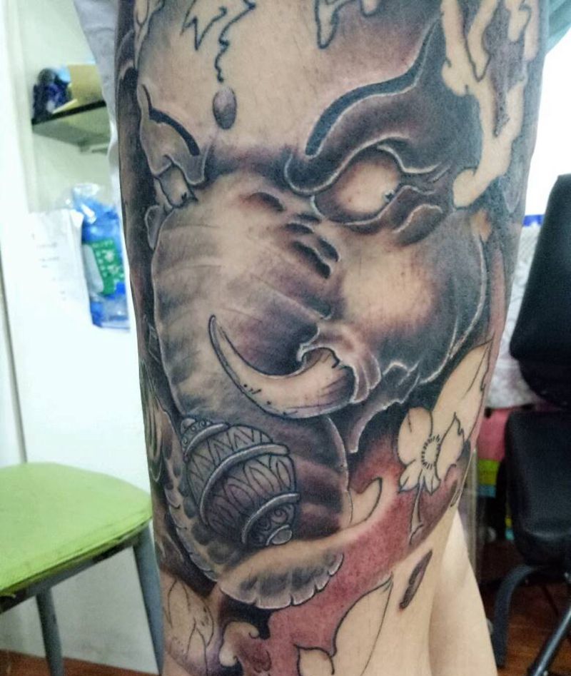 当前位置: 首页 >安徽省六安市纹身店-刺云匠纹身图案>大腿象神纹身图片