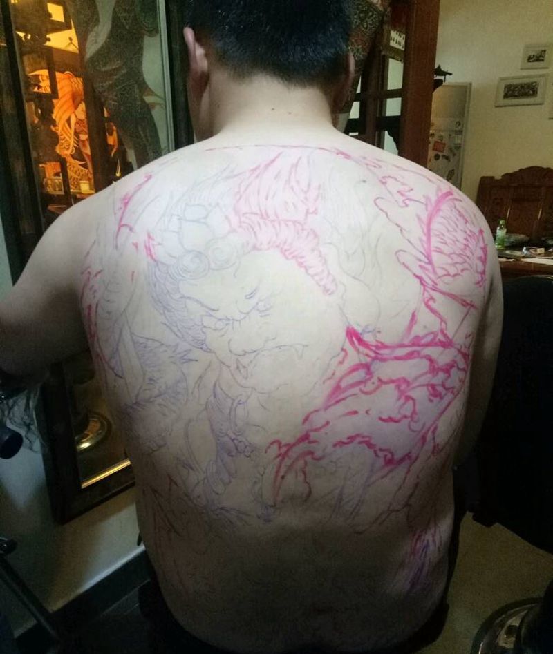 • 黑灰满背纹身图案
