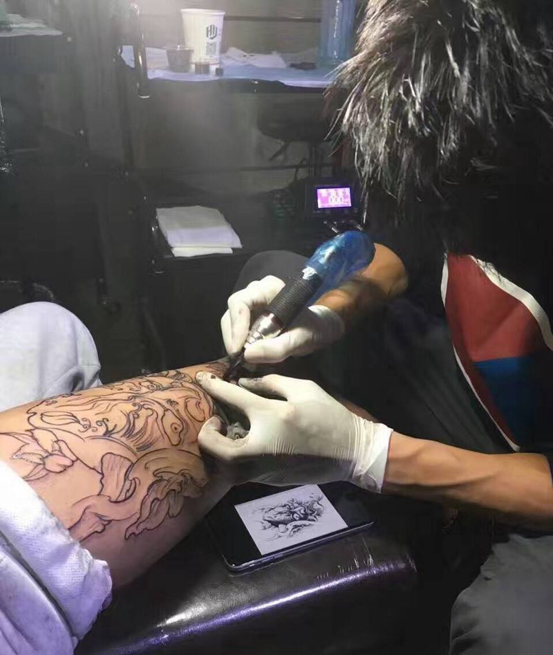 • T网红王老大花腿龙纹身图片_腿部新传统纹身图案