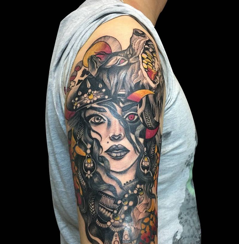 • 纹身吧推荐的披肩图腾半胛纹身图案作品展示