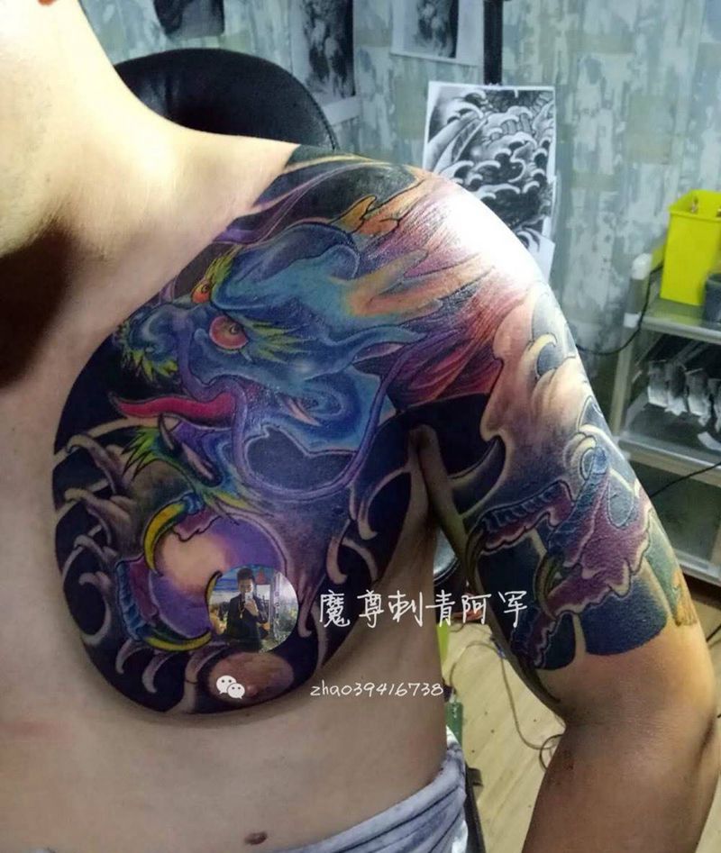 • 纹身吧推荐的披肩图腾半胛纹身图案作品展示