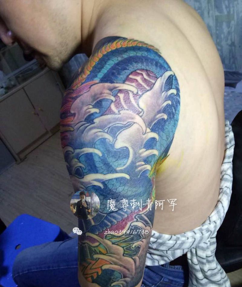 • T网红王老大花腿龙纹身图片_腿部新传统纹身图案