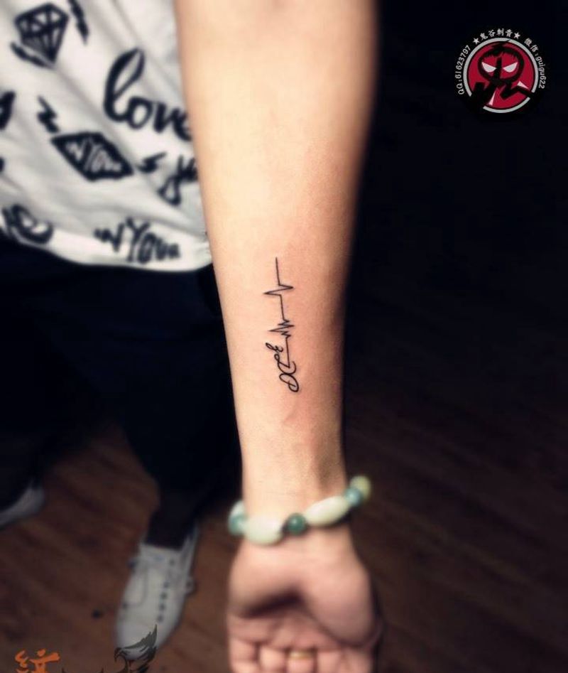 当前位置: 首页 >安徽省亳州市纹身店-鬼谷刺青工作室纹身图案>小清新心电图纹身图片_成品手臂清新字符纹身图案